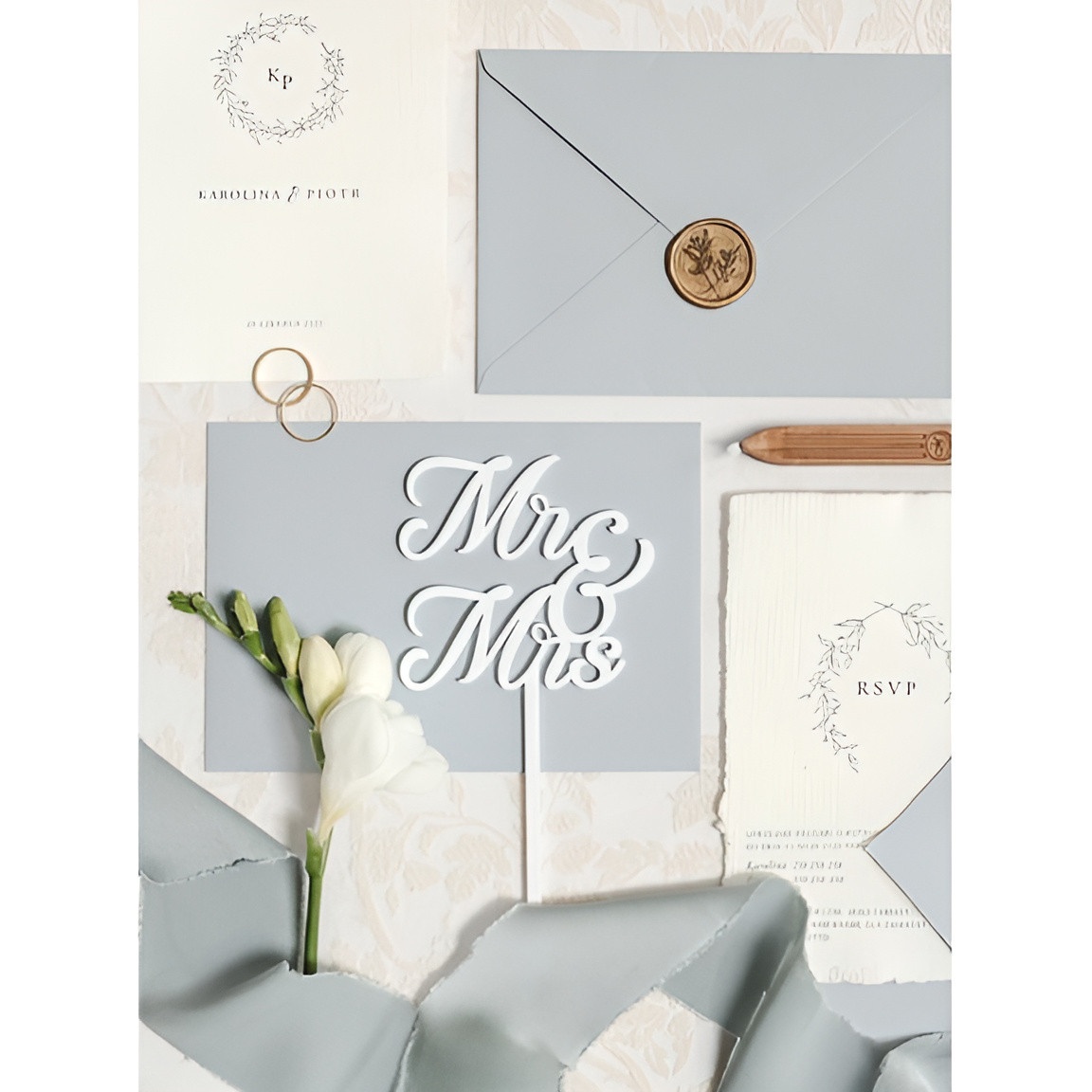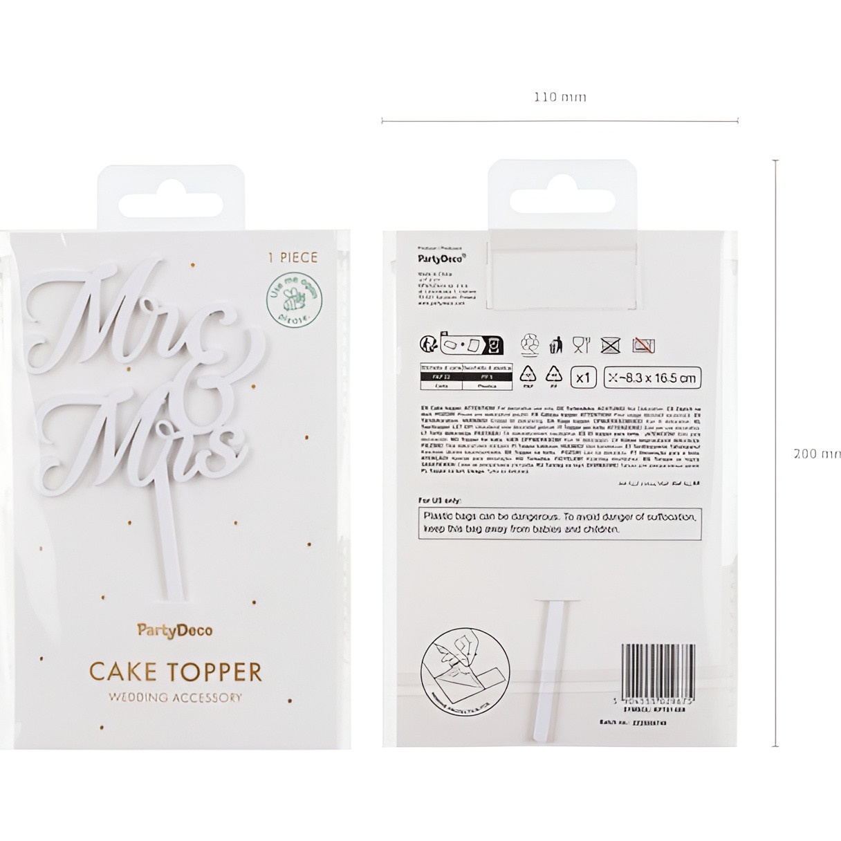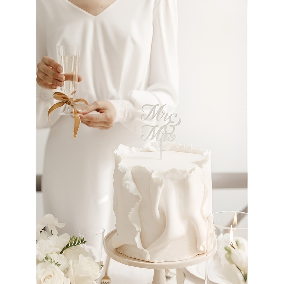 Der MR & MRS Torten-Topper aus weißem Acryl verleiht Ihrer Hochzeitsdekoration eine elegante und romantische Note. Das kalligrafische Design und die polierte Oberfläche setzen jede Torte wirkungsvoll in Szene und schaffen einen stilvollen Blickfang.