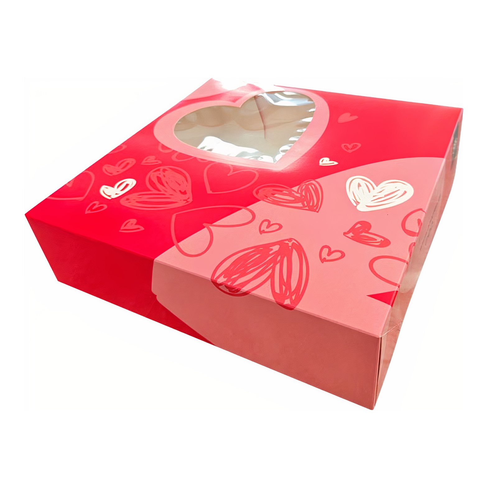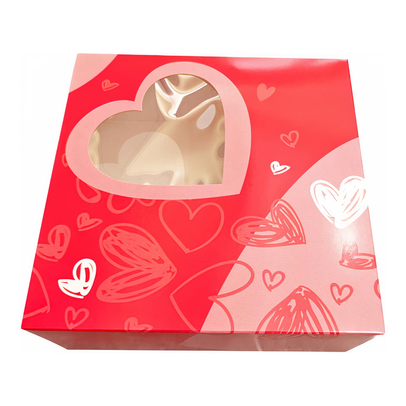 Originelle Kartonbox mit herzförmigem Sichtfenster - ideal, um Ihre Torte sicher zum Valentinstag zu transportieren.