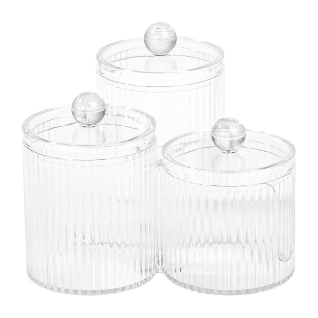 Er verfügt über drei Behälter mit Deckel und Knauf, die Ihnen das ordentliche Verstauen von Pinseln, Kosmetik, Wattepads und kleinen Accessoires ermöglichen, ohne zusätzlichen Platz zu beanspruchen.