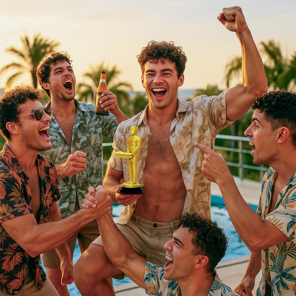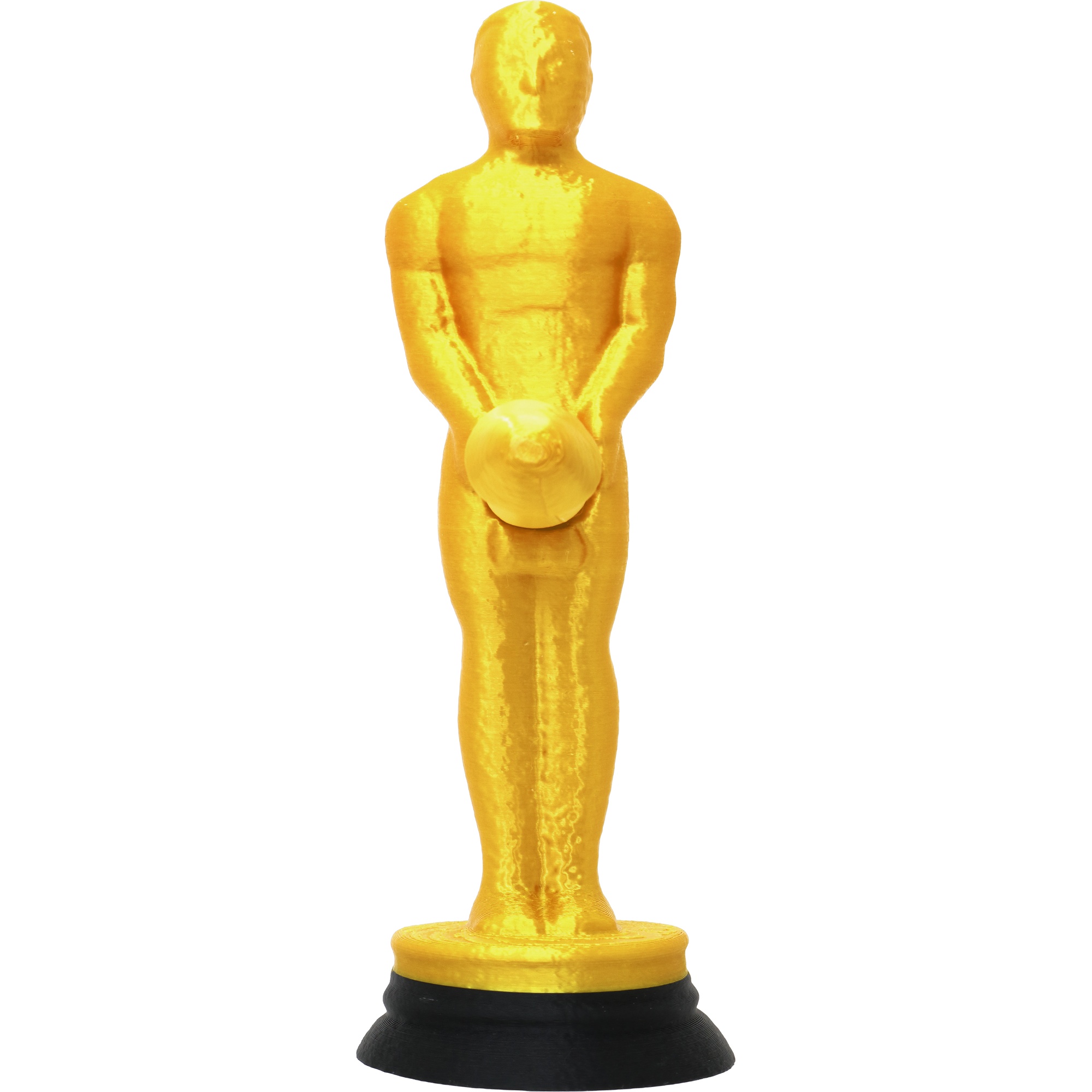• Glänzende Goldoberfläche, die an eine klassische Statuette erinnert.