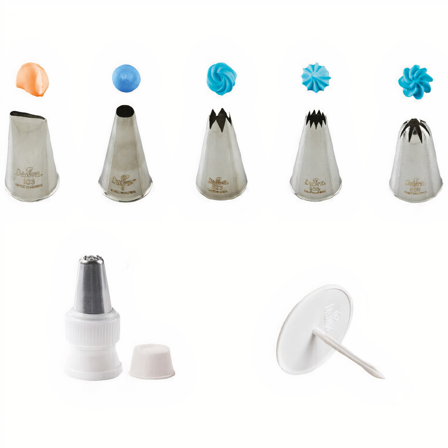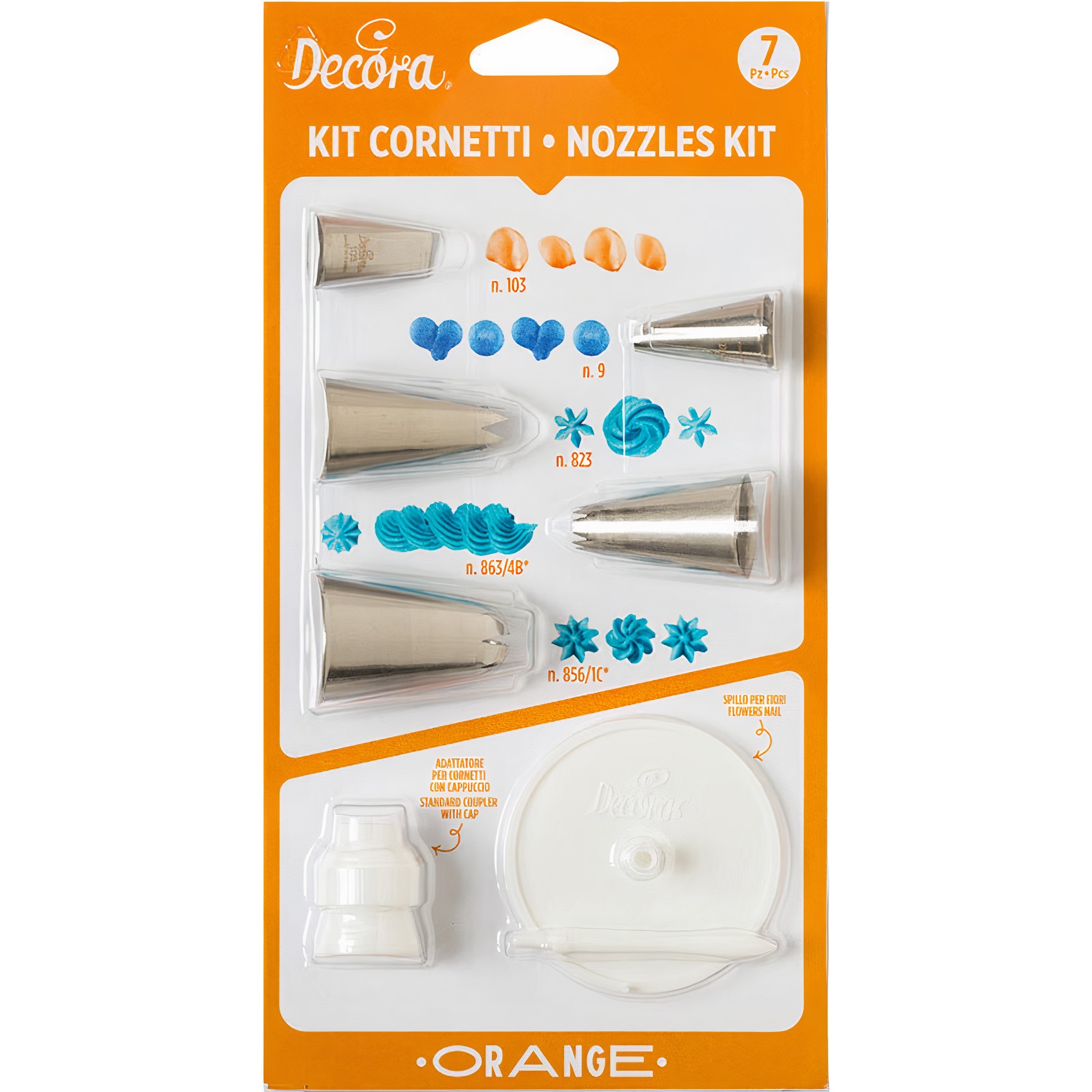 - Das Set enthält: 1 Adapter mit Deckel, 1 großer Blumenhalter, Tüllen Nr. 103, 9, 823*, 863/4B*, 856/1C* (*zur Verwendung ohne Adapter).