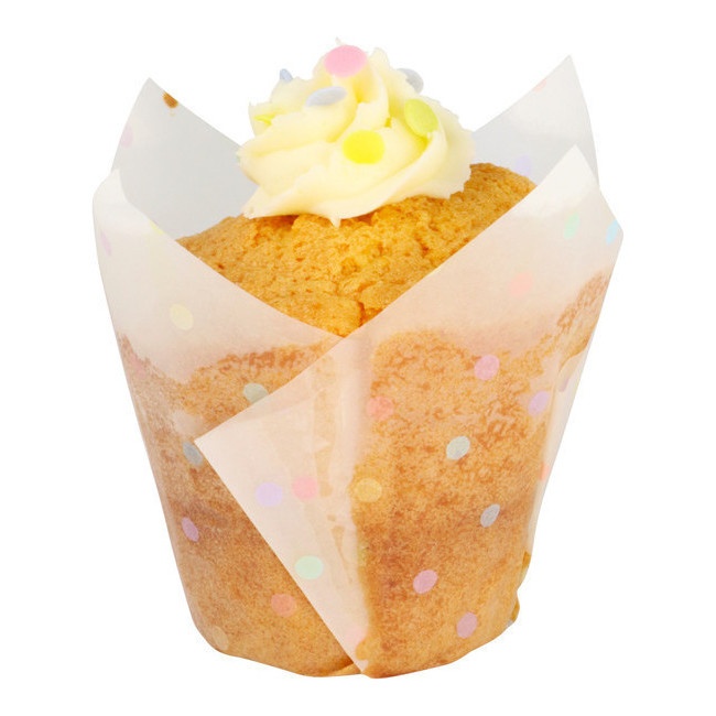 Tulpenförmchen aus Papier mit bunten Tupfen - PME - 24 Stück.