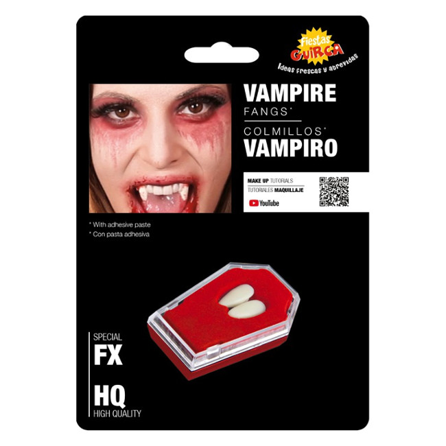 Diese scharfen Reißzähne werden so angebracht, als ob sie eine Hülle auf den Zähnen wären. Perfekt, um Ihr Vampirkostüm zu vervollständigen, da sie sehr realistisch aussehen.