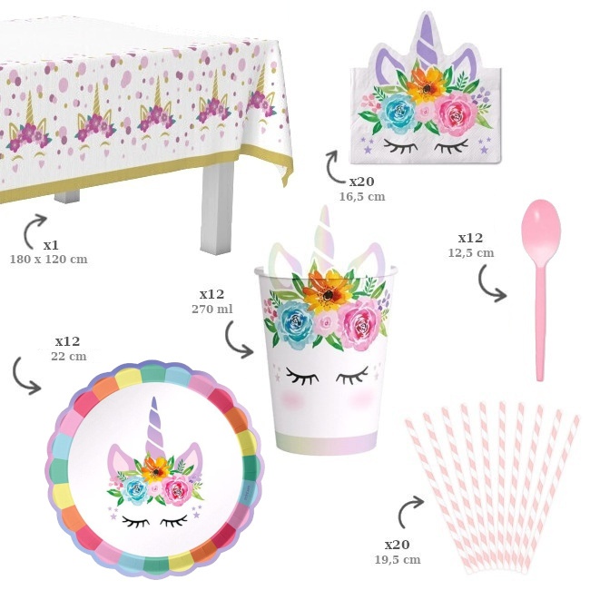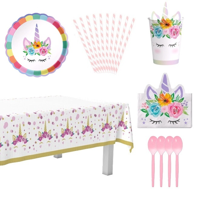 Es ist ein Set mit allem Notwendigen, um eine Party mit Einhorn-Motiv zu genießen.