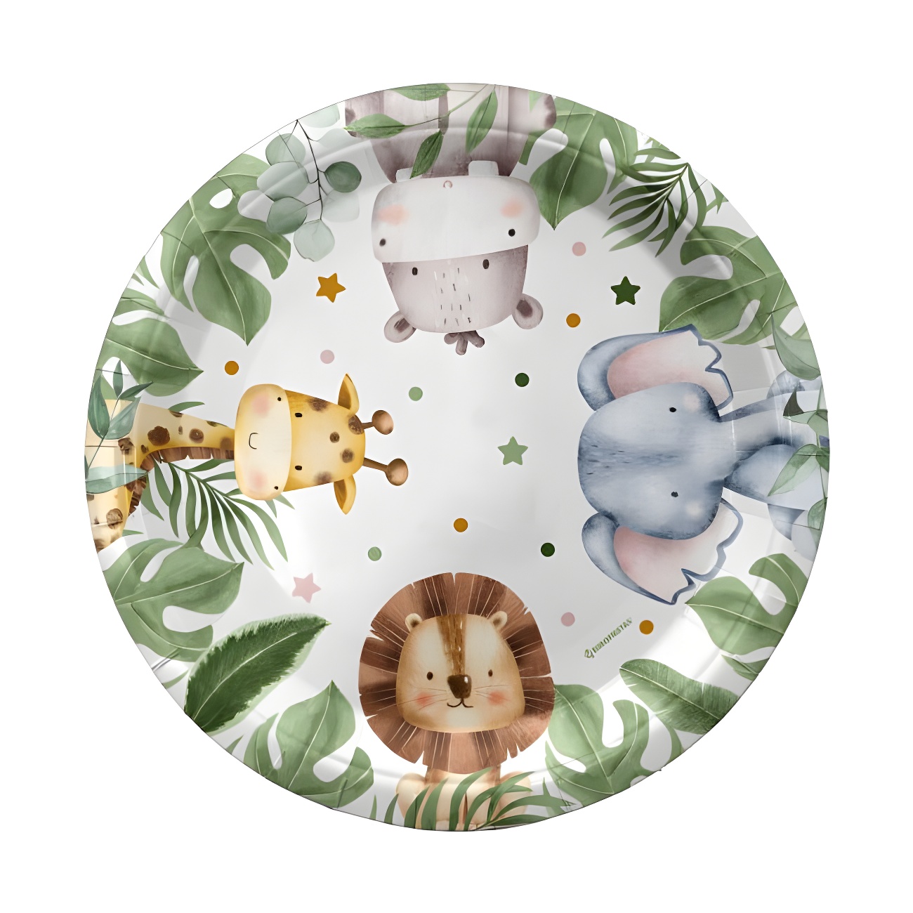 Bunte, vintage-inspirierte Pappteller mit Tiermotiven, mit denen Sie Ihren Tisch bei einer Tier?Mottoparty stilvoll dekorieren können.