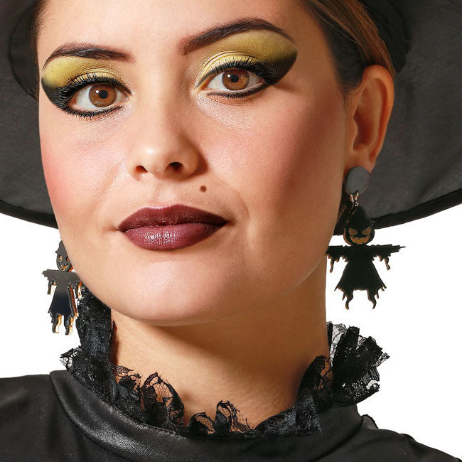 • Ohrringe mit schwarzer Vogelscheuchenfigur, ideal für ländliche Horror-Kostüme.