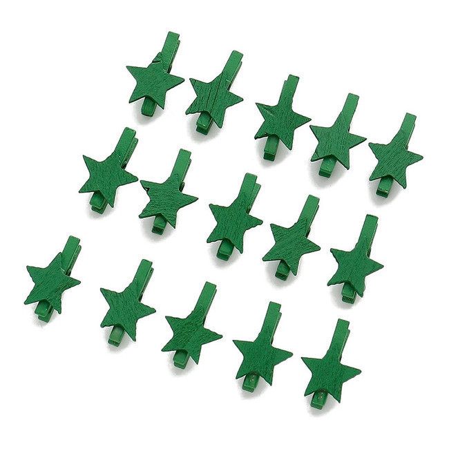 Wäscheklammern aus Holz mit farbigem Stern 3 cm - 15 Stück.