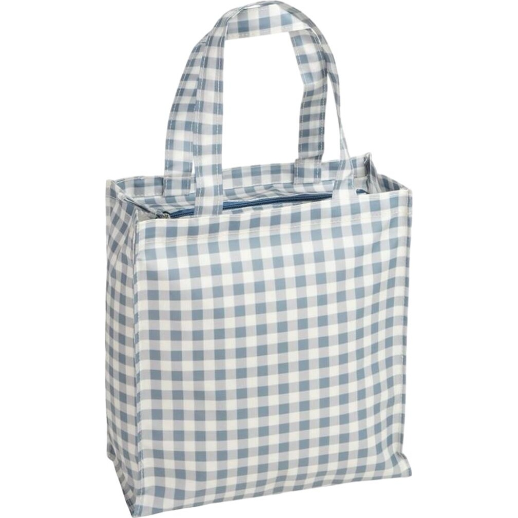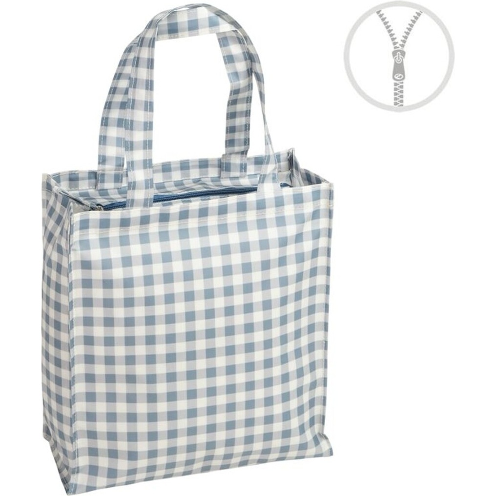 Wasserdichte Tasche mit Reißverschluss und Vichy?Design in Blautönen. Sie verfügt über verstärkte Tragegriffe für komfortables Tragen und eine strukturierte Form, die Ihnen hilft, Ordnung zu halten. Leicht und robust verleiht sie jedem Outfit eine klassische, ungezwungene Note. Perfekt, um persönliche Gegenstände stilvoll und sicher zu transportieren - dank des wasserdichten Gewebes.