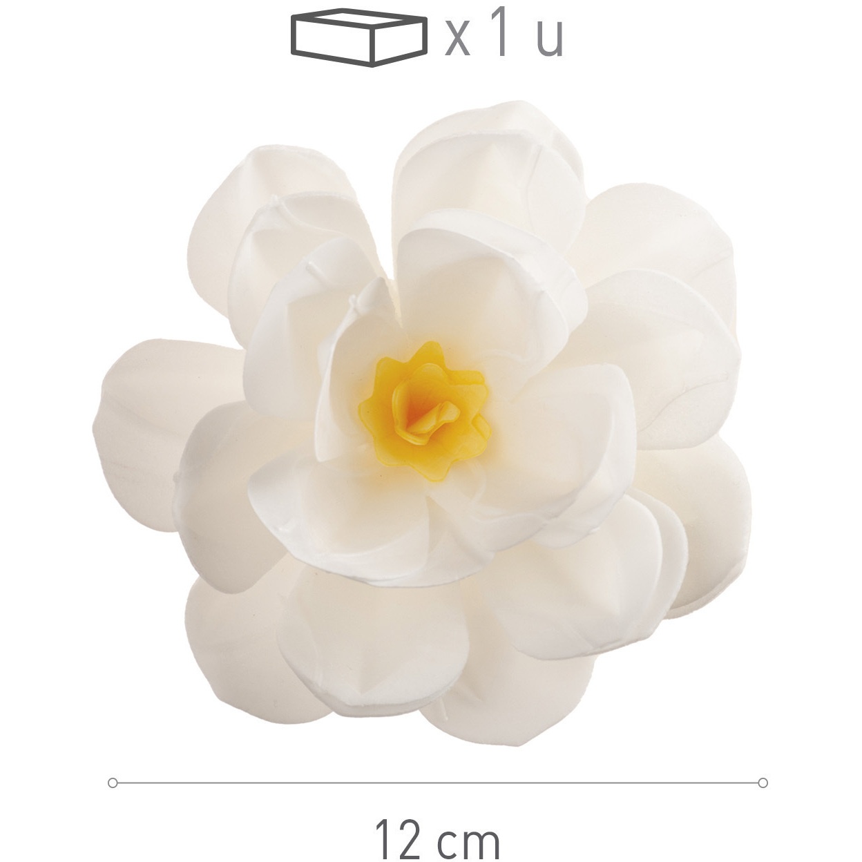 Weiße Blumenwaffel mit gelbem Zentrum, 12 cm