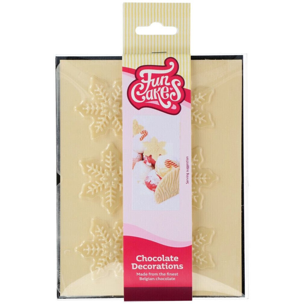 - 6 belgische weiße Schokoladendekorationen von Funcakes mit perfektem Design für Weihnachten.