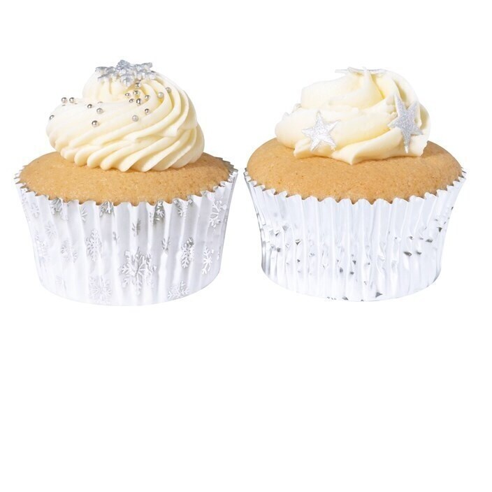 Weiße und silberne Schneeflocken-Cupcake-Kapseln - PME - 60 Stück.