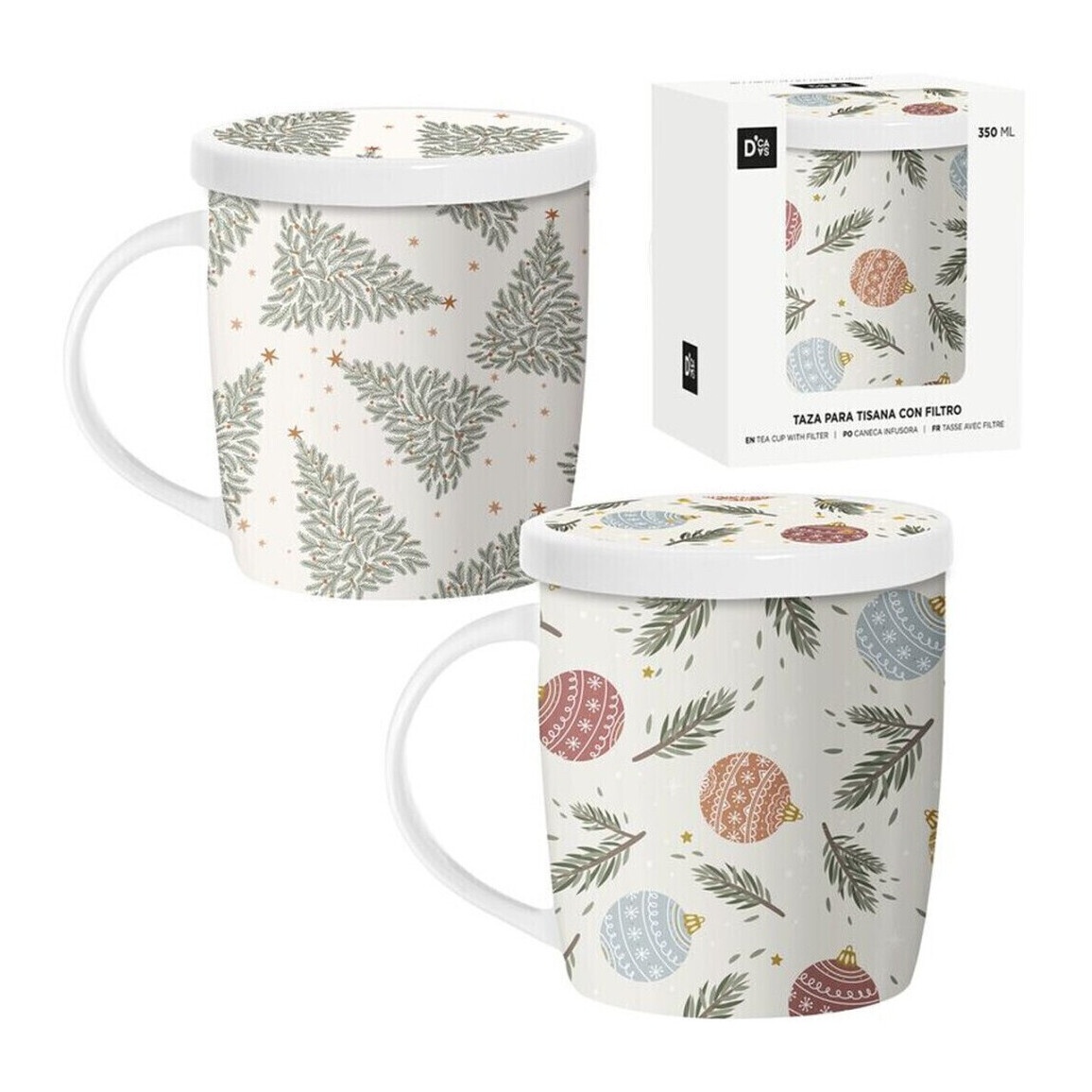 Weihnachtliche Tasse mit 350 ml Füllmenge inklusive Tee-Filter - 1 Stück