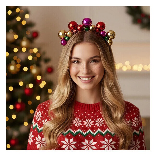 Weihnachtlicher Haarreif mit bunten Kugeln und Glöckchen