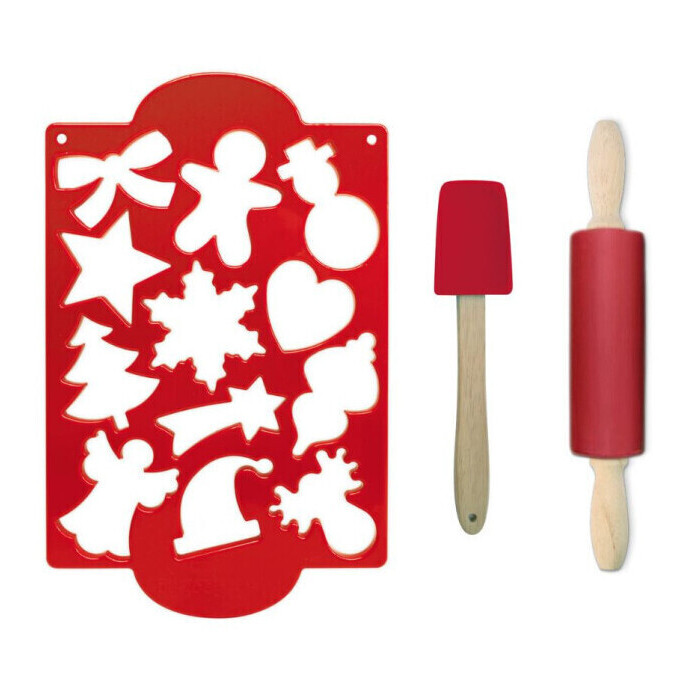 Weihnachts-Multi-Cutter, Nudelholz und Spachtel-Set - Scrapcooking - 3 Teile.