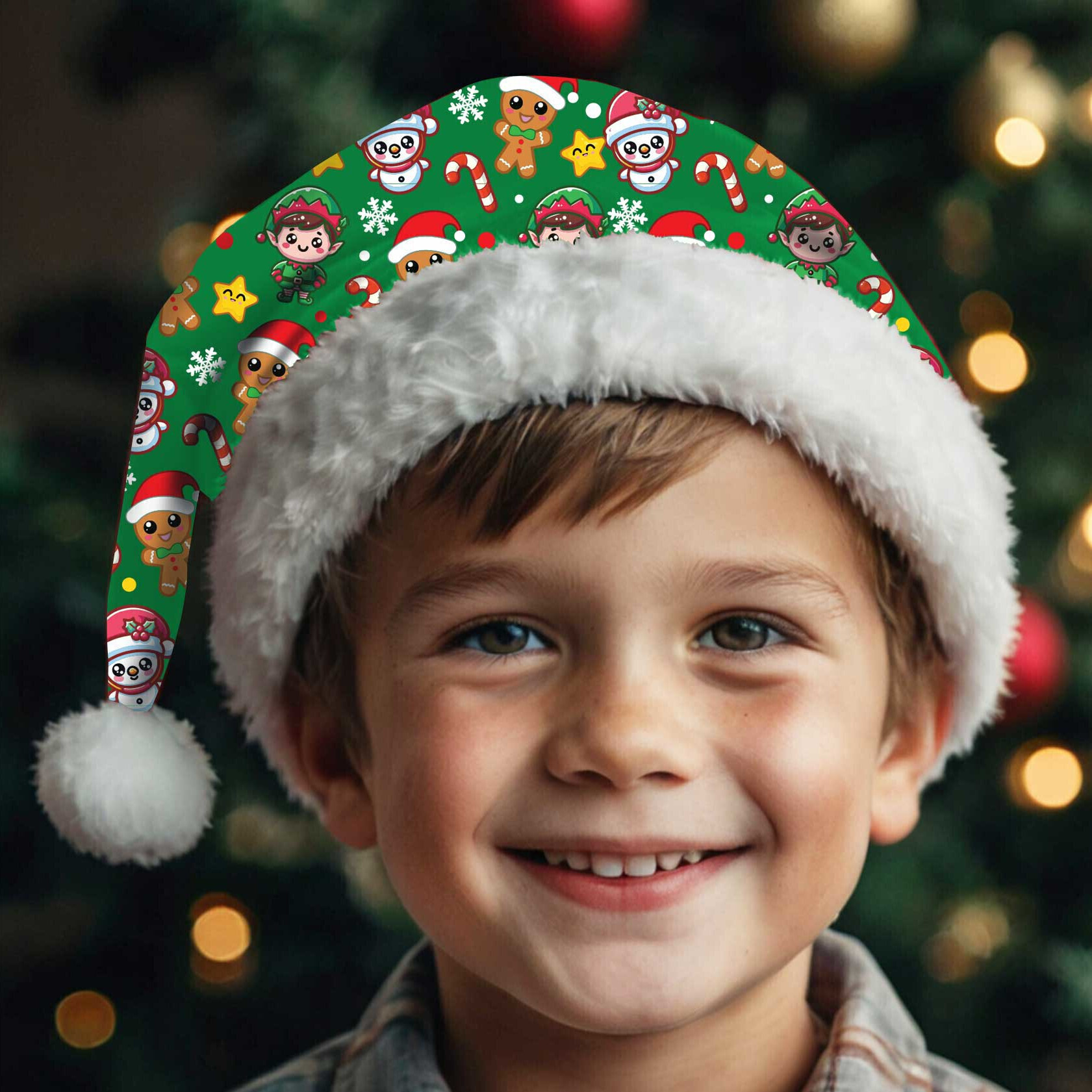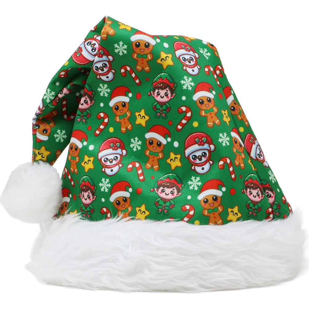 Weihnachtsmannmütze mit grünem Kindermotiv