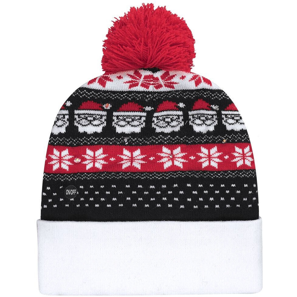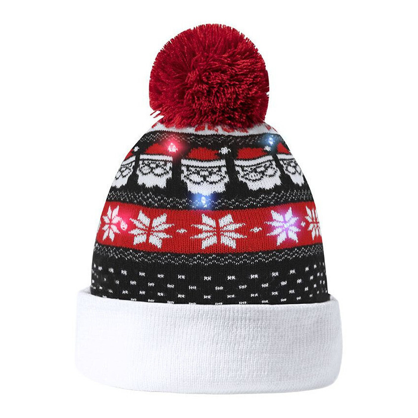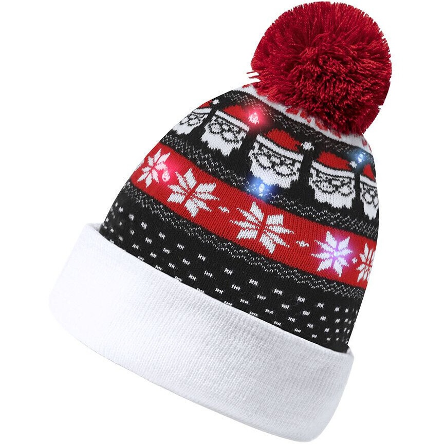 • Weihnachtsmütze mit LED-Licht und Bommeldesign.