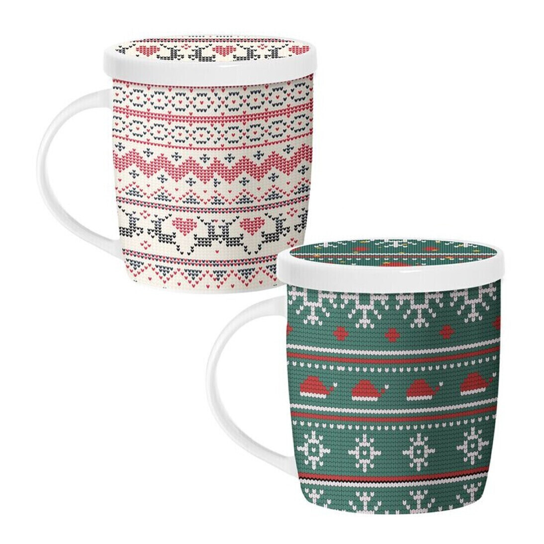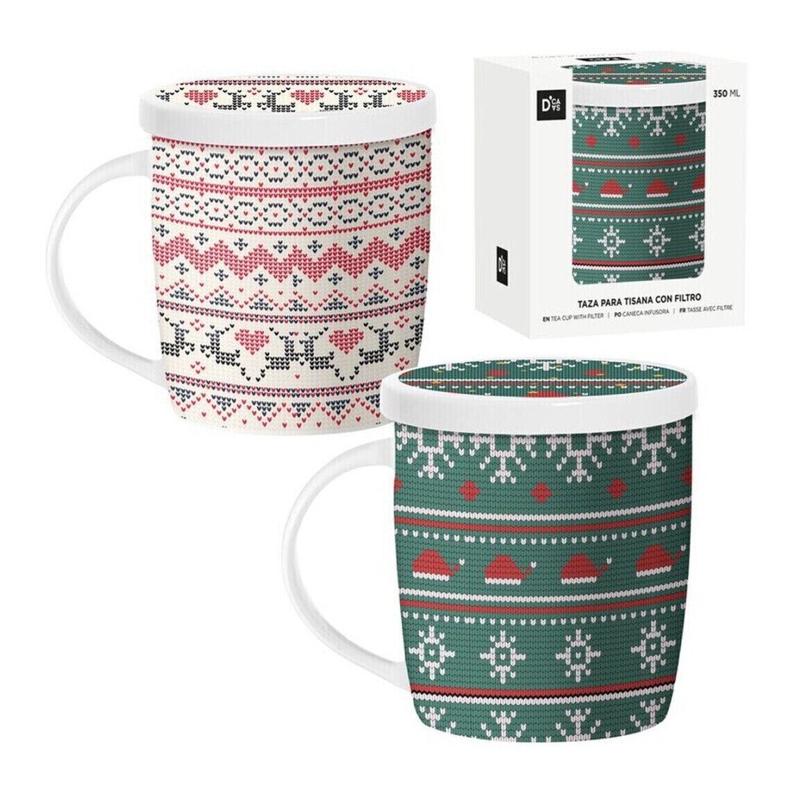 Weihnachtstasse mit Schneemotiv und Tee-Filter - 1 Stück