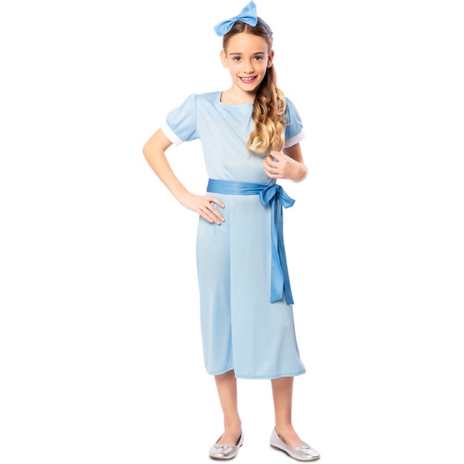 Ein sehr feines Stoffmodell in Blau mit einem Gürtel in einem etwas dunkleren Farbton. Enthält auch ein Stirnband.
