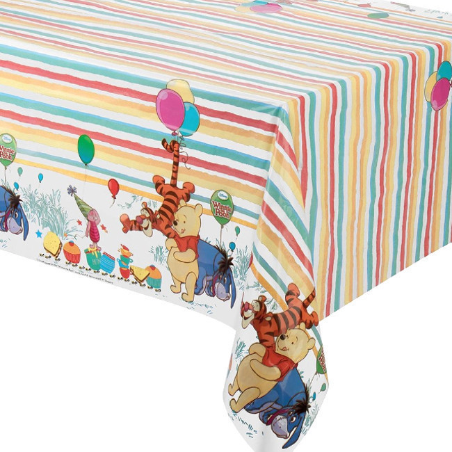 Mit dieser niedlichen und farbenfrohen Tischdecke können Sie jede Party mit dem bezaubernden Winnie the Pooh-Thema dekorieren. Die Tischdecke zeigt die Hauptfigur und ihre Freunde, die zusammen Spaß haben.