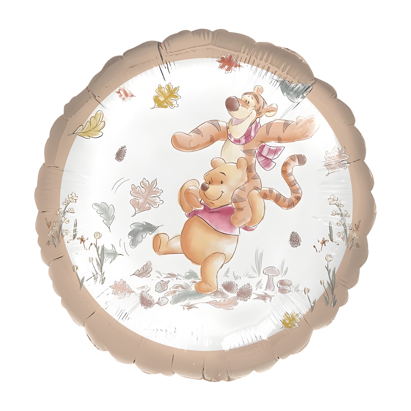Folienballon im offiziellen Disney?Design mit Winnie?the?Pooh und Tigger. Die Illustrationen in sanften Farbtönen und die dezenten herbstlichen Details schaffen eine liebevolle, fröhliche Atmosphäre für jede Kinderfeier.