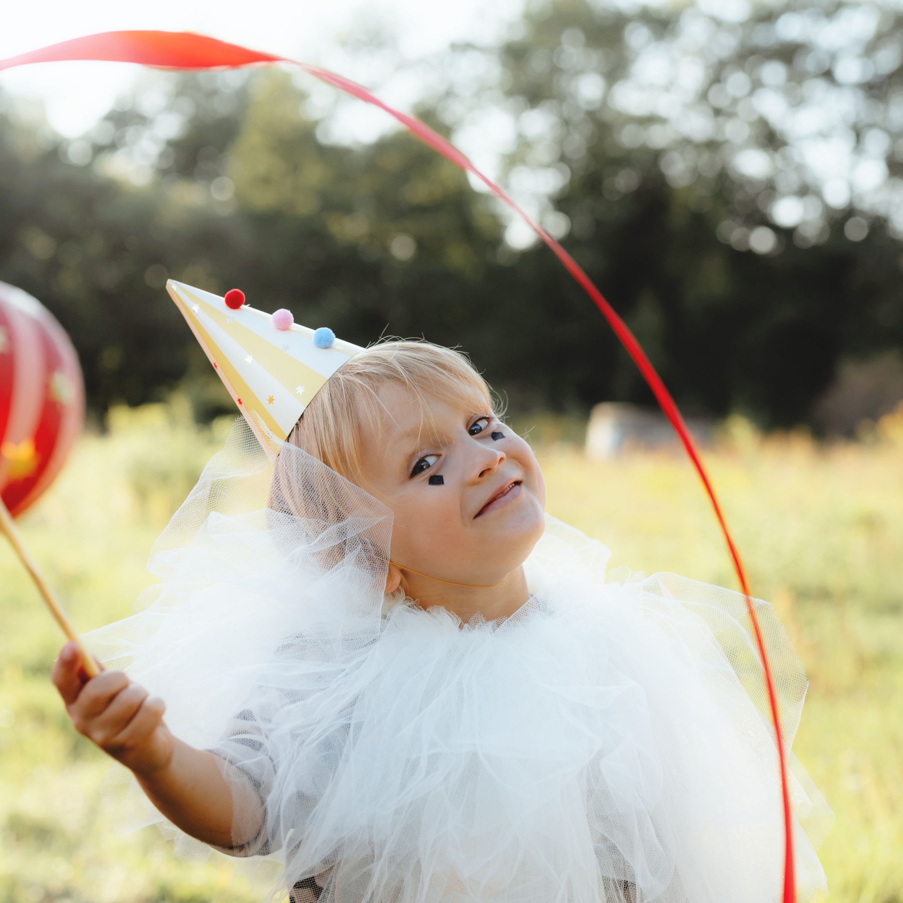 Die ganze Familie sah auf der Geburtstagsparty mit ihren Mützen sehr hübsch aus, auch wenn das Problem mit dem Kleber hätte verbessert werden können, denn die Bommeln fielen ständig ab.