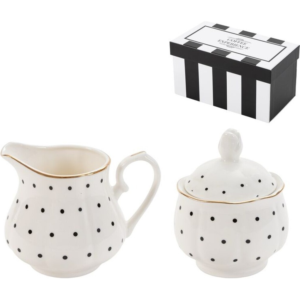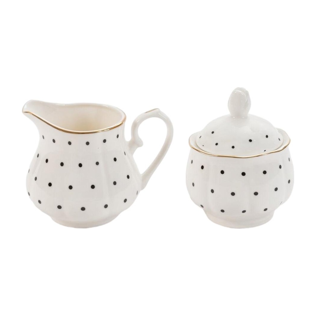Zuckerdose und Milchkännchen mit Pünktchen und goldenem Rand