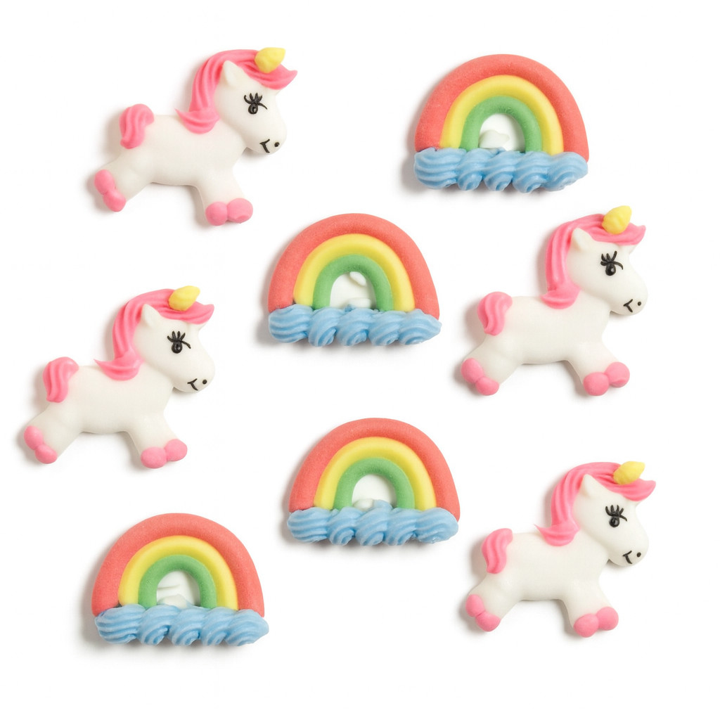 Zuckerfiguren von glücklichen Einhörnern - 8 Stück