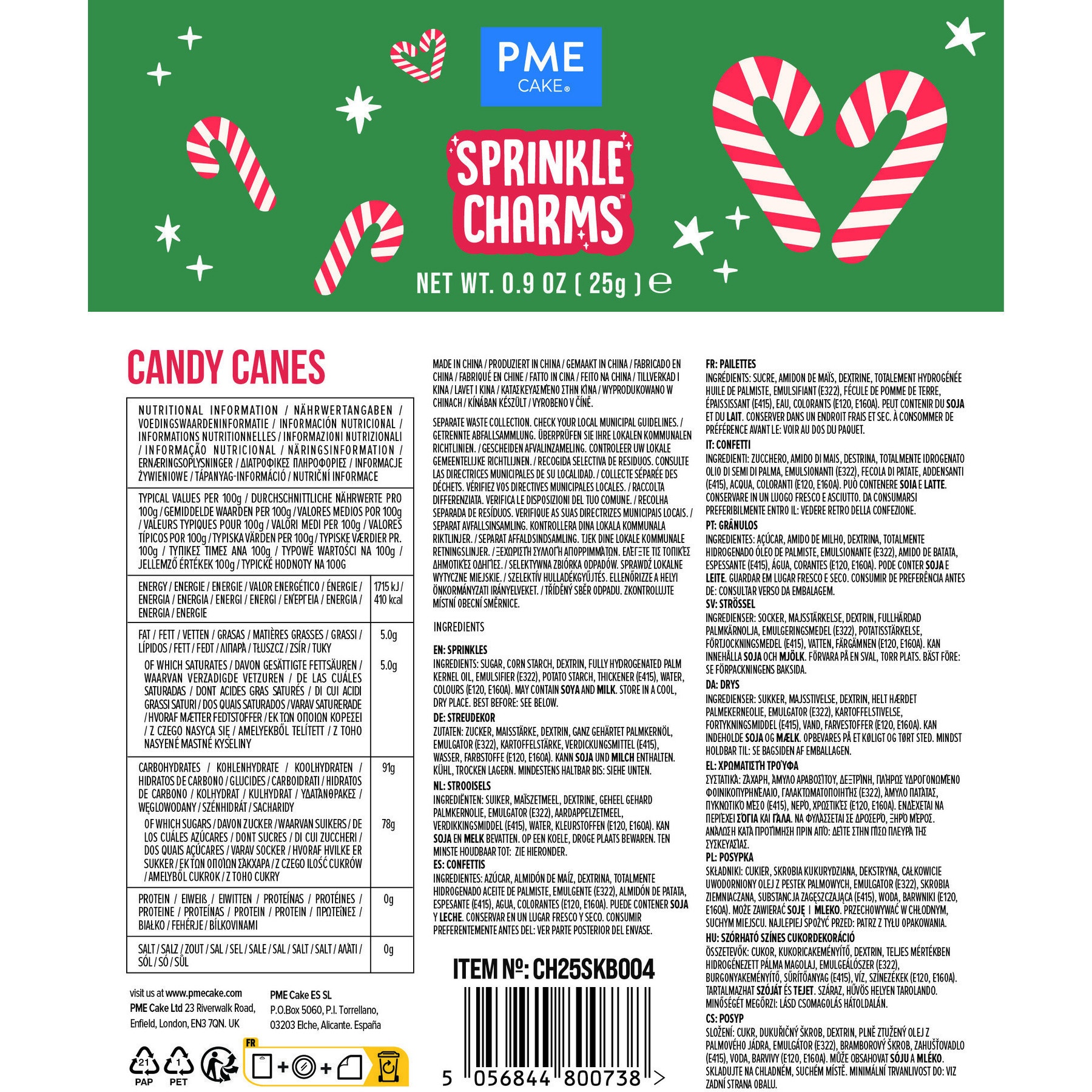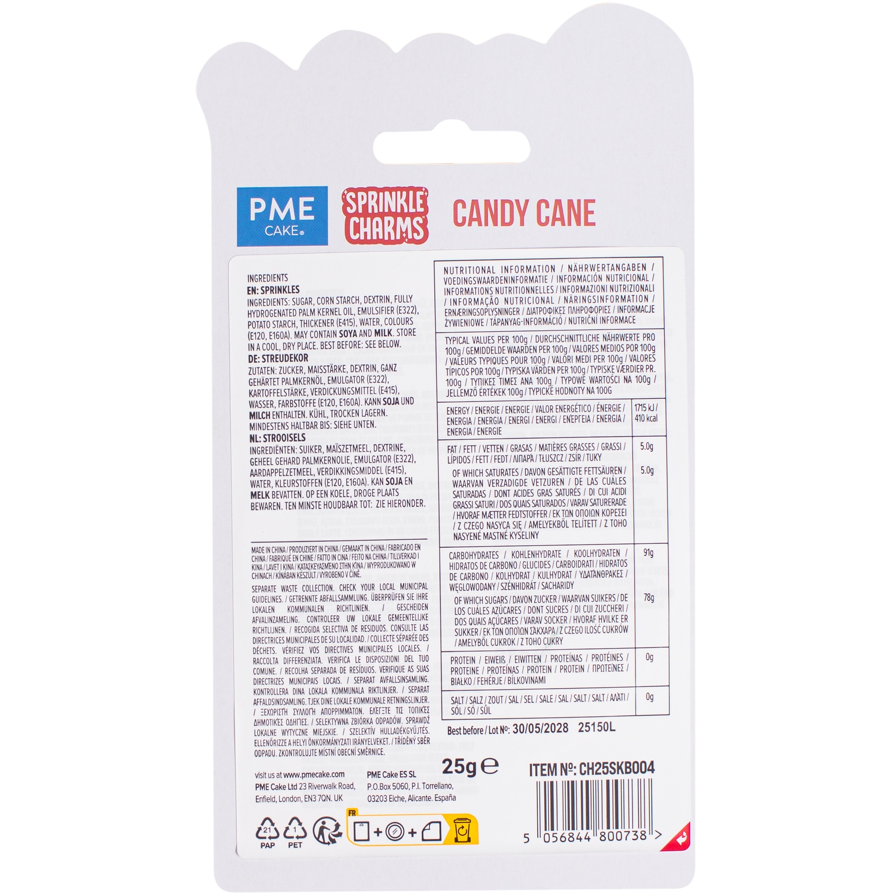 Zuckerstreusel mit Zuckerstangenmotiv, 25 gr - PME